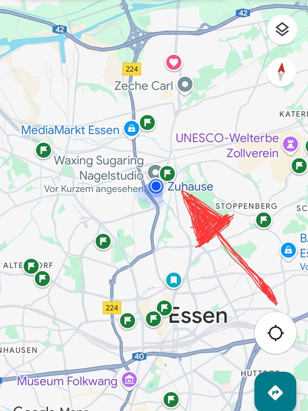 Mein Studio befindet sich nicht weit vom Essener Zentrum. Falls Sie vom Hauptbahnhof mit der U-Bahn fahren, ist es die 5. Haltestelle ‚Bäuminghausstraße‘. Die U-Bahn-Station liegt nur etwa 30 Meter von meinem Studio entfernt. Ich bin auch über die Autobahnen A40, A42 oder A224 sehr gut erreichbar. In der Nähe liegt außerdem der S-Bahnhof Altenessen.
